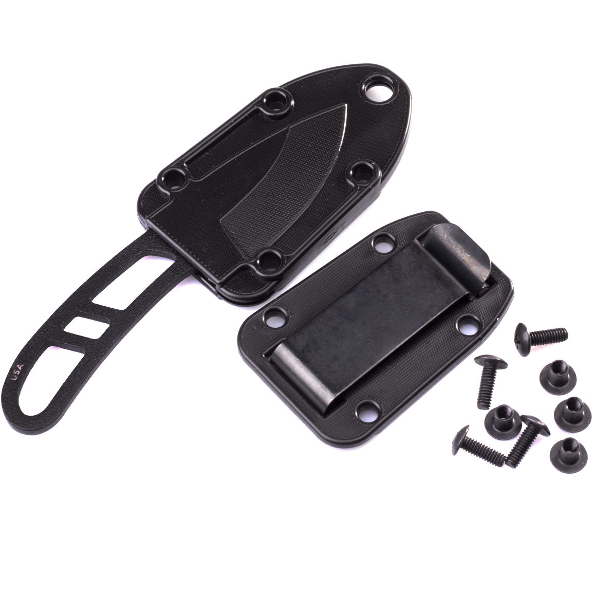 De gevormde schede met meerdere bevestigingsgaten maakt dragen aan een koord, montage aan een riem of bevestiging aan een rugzak mogelijk. Fixeert het mes veilig en beschermt de snede tijdens transport.
