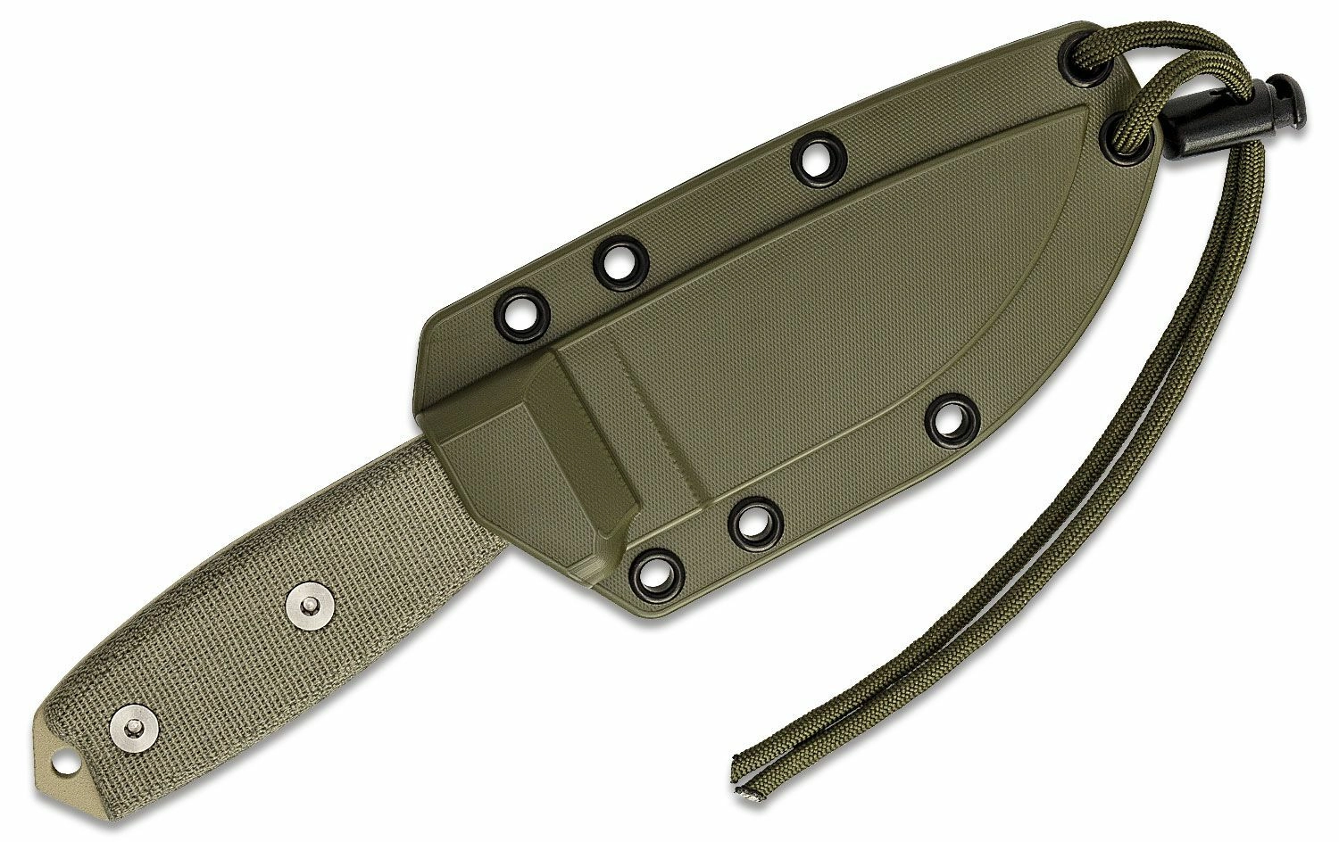 De ergonomische handgreep van Micarta in zandbruin Desert Tan zorgt voor een zekere greep, ook onder veeleisende omstandigheden. Het mes is uitgerust met een koordoog en een praktische glasbreker aan het uiteinde van de greep. In de verpakking zit een duurzame kunststof schede in Desert Tan voor veilig en snel inzetbaar dragen in het veld.