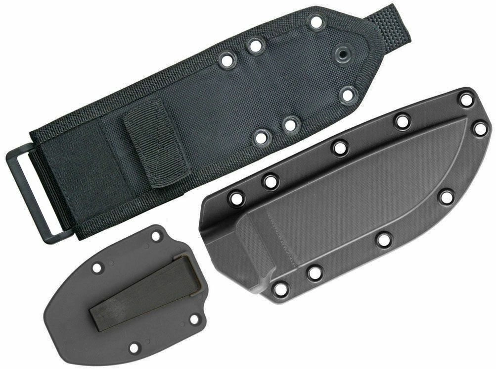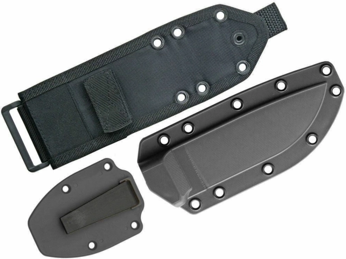 De anatomisch gevormde micarta handgreep in donkerbruin zorgt voor een zekere grip, ook onder zware omstandigheden. Het mes wordt geleverd met een robuuste zwarte kunststof schede die dankzij compatibiliteit met het MOLLE-systeem aan uitrusting kan worden bevestigd – ideaal voor militairen, politie en outdoorliefhebbers.