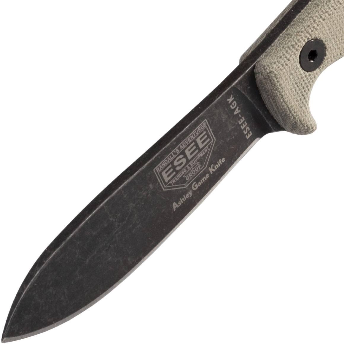 Het model ESEE AGK (Ashley Game Knife) is een compacter jachtmes, ontwikkeld voor precisiewerk in het veld – van uitbenen tot fijn snijden. Het duurzame koolstofstaal 1095 met Black Oxide Stonewash-oppervlak biedt uitstekende snijeigenschappen, eenvoudig slijpen en robuustheid voor dagelijks gebruik.