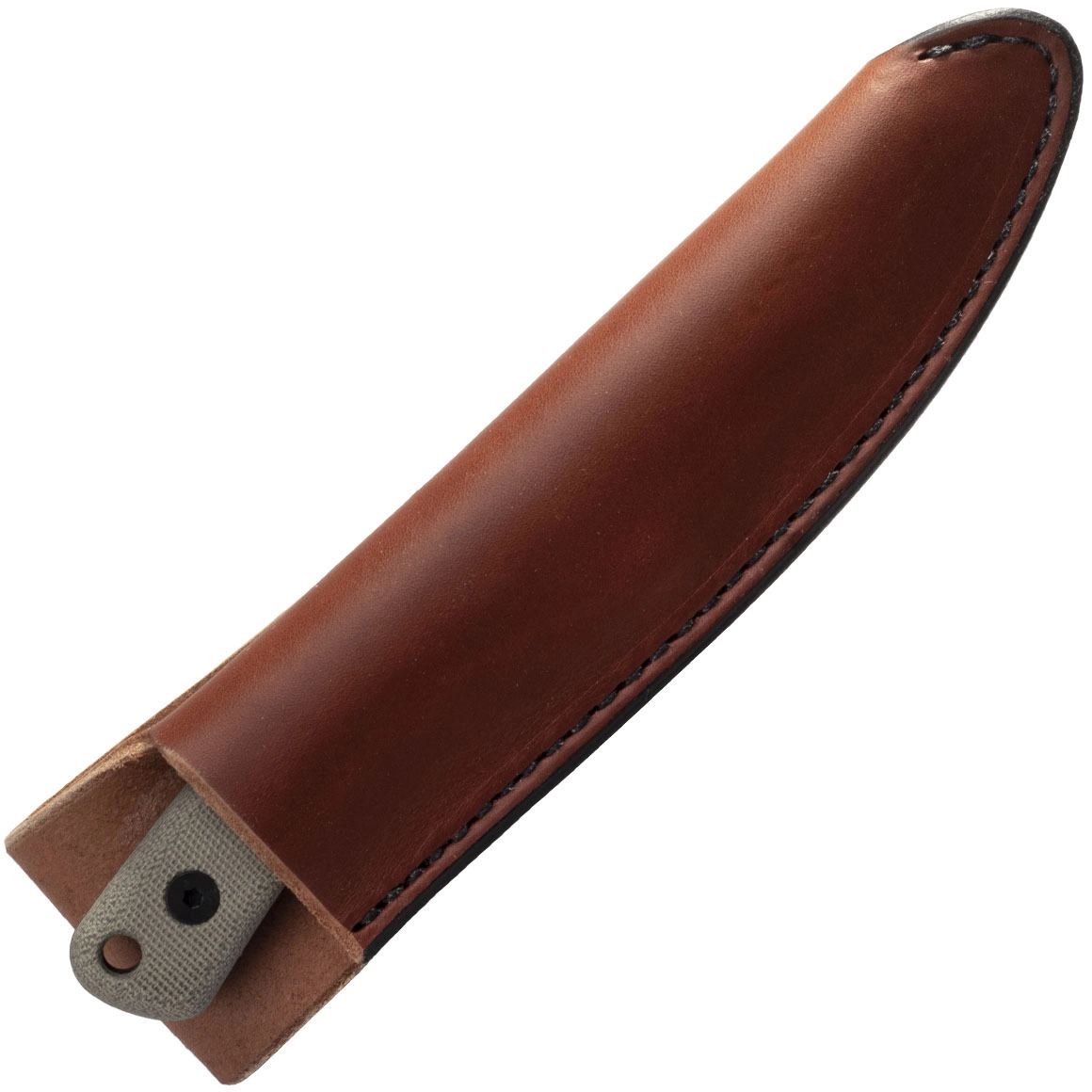 Hoogwaardig leren foedraal met riemlus beschermt het lemmet en maakt comfortabel en veilig dragen in het veld mogelijk.