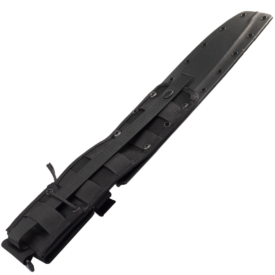 Duurzame Kydex schede met meerpunts vergrendeling en MOLLE-compatibiliteit maakt veilig dragen aan riem of uitrusting en snel trekken mogelijk.