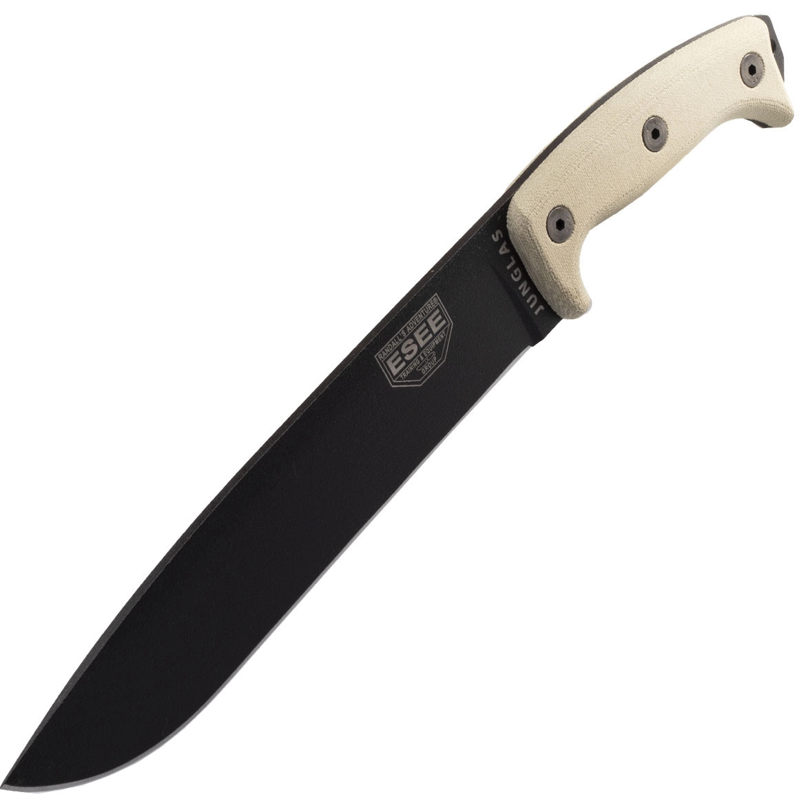 De ESEE JUNGLAS-E machete is een tool voor avonturiers, bushcrafters en professionals. Het sterke lemmet van 1095 koolstofstaal met zwarte afwerking snijdt, hakt en baant zich moeiteloos een weg door vegetatie. Dankzij de full-tang constructie is hij extreem duurzaam en betrouwbaar, zelfs bij zwaar werk. De handgreep van Micarta in zandbruine tint ligt uitstekend in de hand, slipt niet weg en biedt aan het uiteinde een koordoog en een praktische pommel voor licht tikwerk.