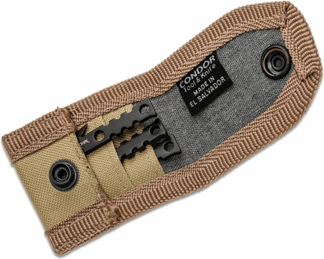 De punten van 1075 koolstofstaal bieden een uitstekende balans tussen sterkte en veerkracht. Onderaan aanwezige gaten en inkepingen maken een betrouwbare bevestiging aan een houten of andere geïmproviseerde schacht mogelijk, zodat je in een handomdraai een effectieve speer maakt. De compacte afmetingen en het nylon etui zorgen voor veilige en overzichtelijke opslag in rugzak of broekzak.