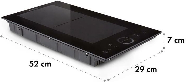 - Twee kookzones met 1500 W en 2000 W, totaal 3500 W