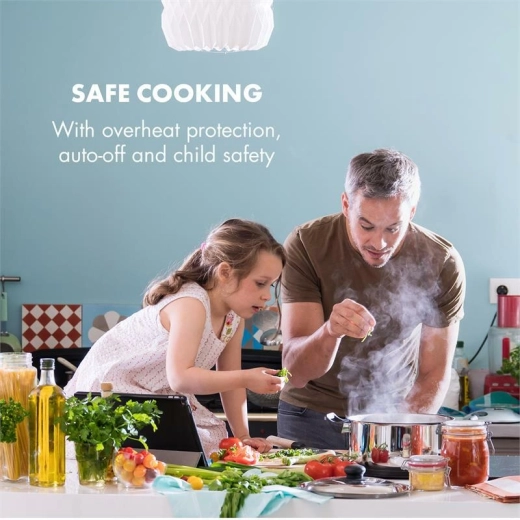 Voor veiligheid en efficiëntie zorgen slimme functies: EcoThermal Control benut restwarmte, oververhittingsbeveiliging met automatische uitschakeling bewaakt het gebruik en het kinder slot voorkomt ongewenste wijzigingen van instellingen. Het elegante glaskeramische oppervlak is gemakkelijk te reinigen en past perfect in elke keuken.
