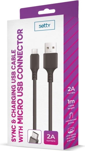 De betrouwbare Setty USB–microUSB-kabel is ontworpen voor dagelijks opladen en synchroniseren. Hij ondersteunt een stroom tot 2 A, zodat je apparaten snel en veilig worden opgeladen. Dankzij de universele microUSB-connector is hij compatibel met een breed scala aan smartphones, tablets, powerbanks en andere apparaten.
