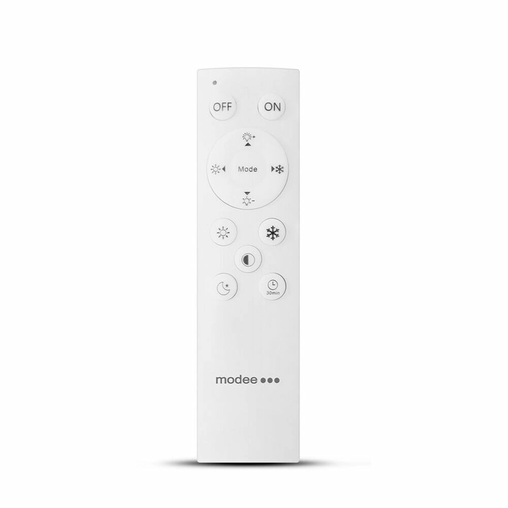 Elegante ronde plafond-LED-lamp Modee Smart Lighting A‑C205 biedt een vermogen van 2×48 W, dimfunctie en IR-afstandsbediening. Je stelt eenvoudig de kleurtemperatuur van 3000–6500 K in, activeert de nachtmodus en dankzij de geheugenfunctie van de laatste instelling keert het licht na het inschakelen terug naar je voorkeursmodus. Mat melkglas met een donkere rand geeft het interieur een moderne uitstraling.