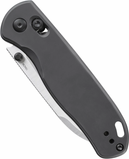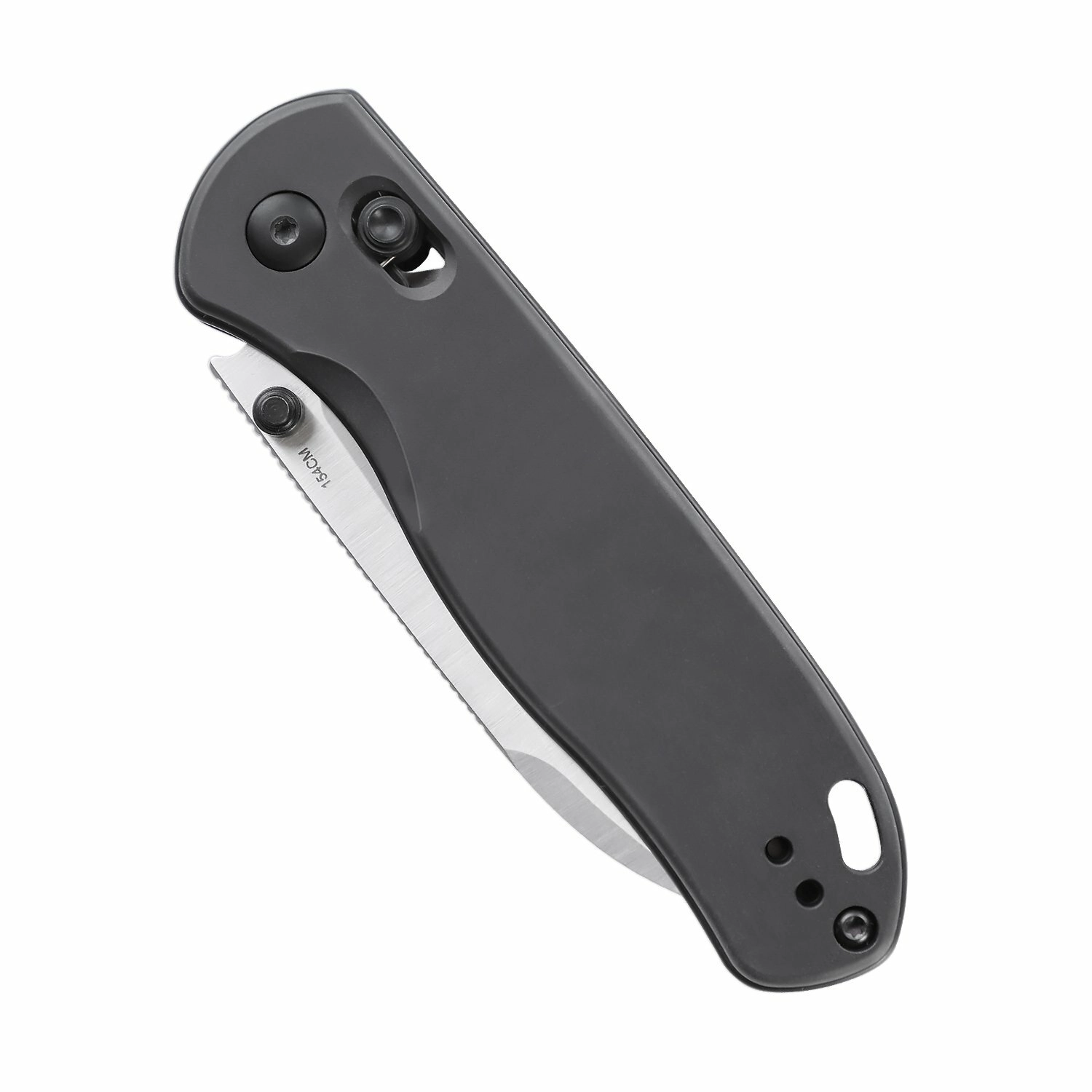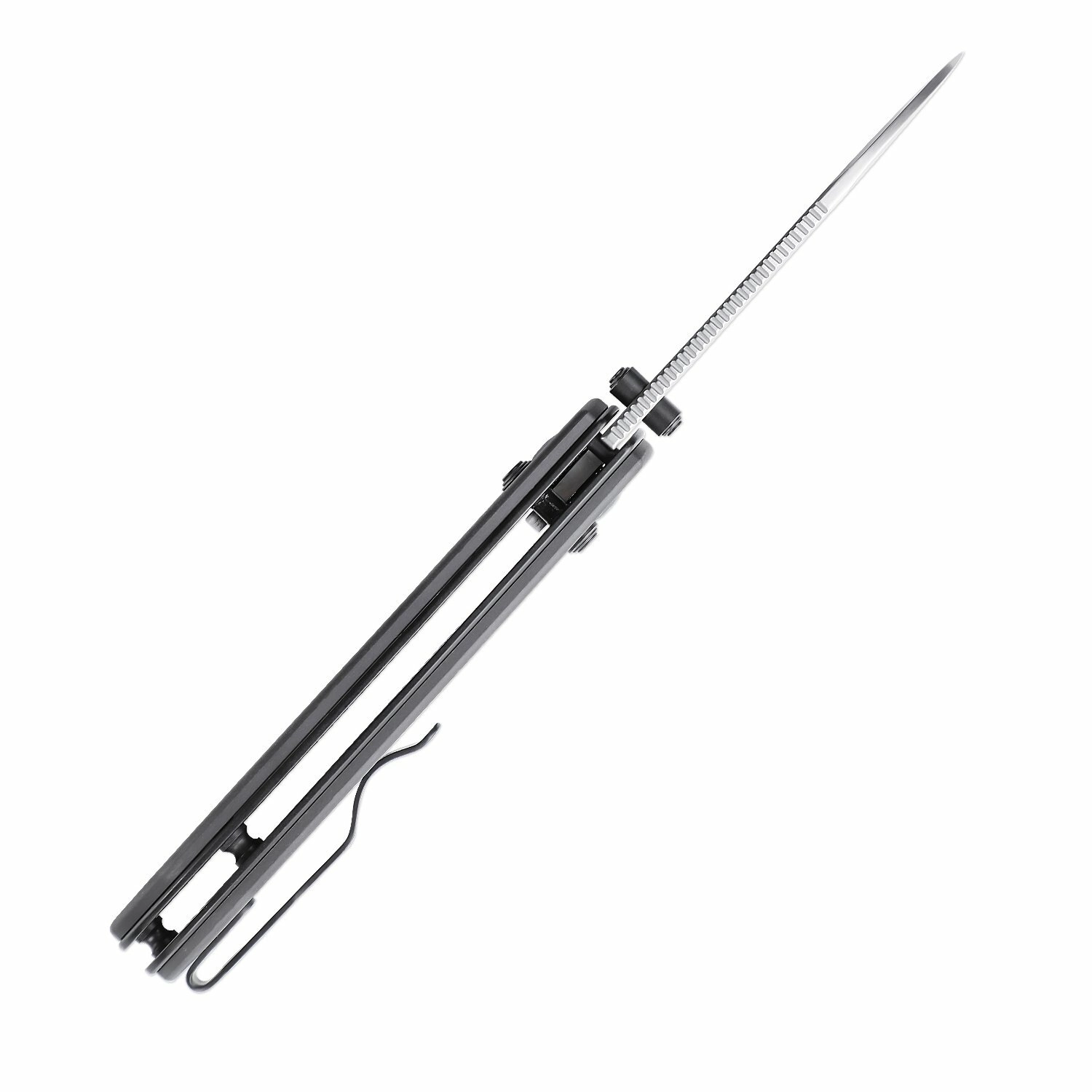 Het Clutch Lock mechanisme biedt zekerheid tijdens het werk en snel openen of sluiten, vergelijkbaar met het populaire AXIS-systeem. De aluminium handgreep in gunmetal-tint is licht maar stevig en met de diepe draagclip draag je hem discreet. Je zult ook de duimstuds waarderen voor soepel openen en het koordoog voor het toevoegen van paracord.