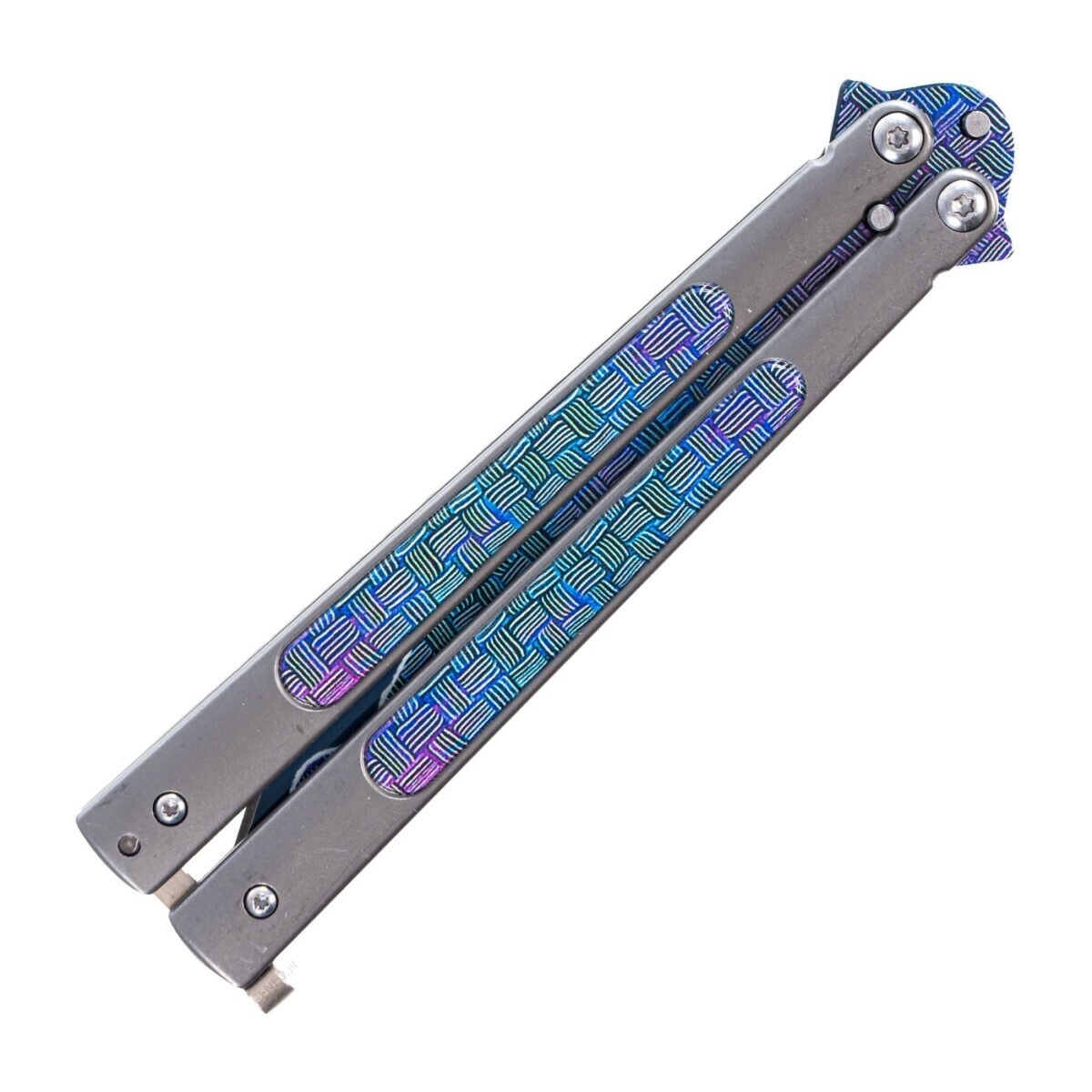 Ideaal als stijlvol zakmes voor dagelijks dragen, het trainen van balisong‑handling of als designobject voor je collectie. De constructie met dubbele pivots en een betrouwbare sluitclip maakt veilig meenemen in gesloten toestand mogelijk en snel inzetten wanneer nodig.