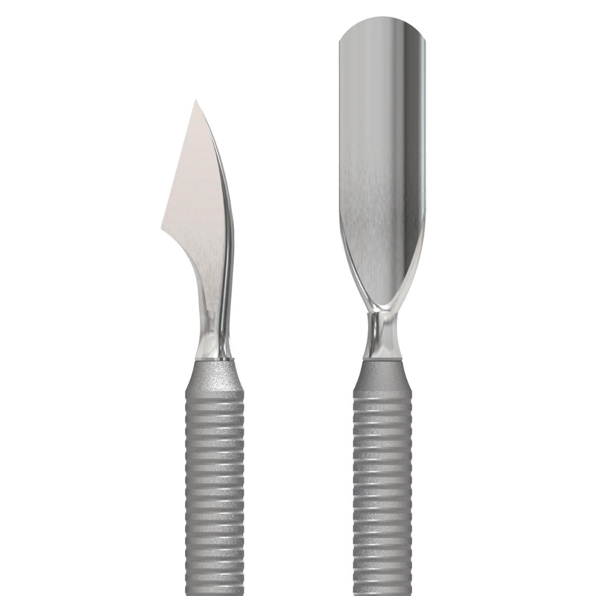 De professionele nagelriemduwer Staleks SMART 51 is een dubbelzijdige pusher met een rechthoekige werkrand en een rechte punt voor zacht reinigen van de nagelplaat. Gemaakt van roestvrij staal AISI 420 met een antisliphandgreep voor een zekere grip en precies werken bij zowel manicure als pedicure.