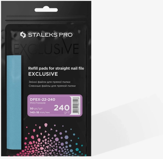 Wegwerpvijlen Staleks Exclusive 22 met korrel 150 zijn gemaakt van premium Zwitsers schuurmateriaal voor langdurige scherpte. Dankzij het dunne profiel en de betrouwbare lijmlaag vormen en verzachten ze snel de nagelplaat. Ideaal voor manicure en pedicure, hygiënische en praktische verpakking van 50 stuks.