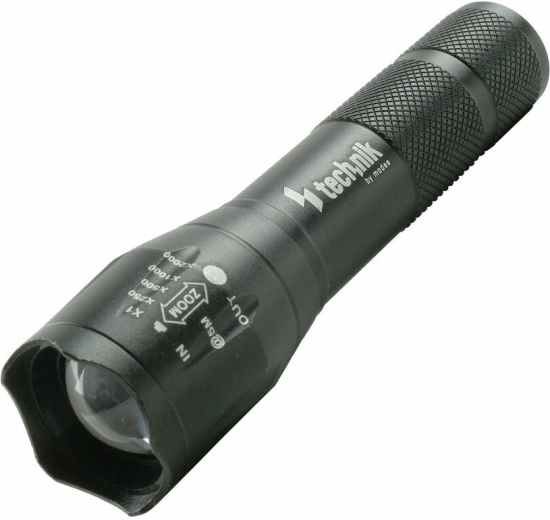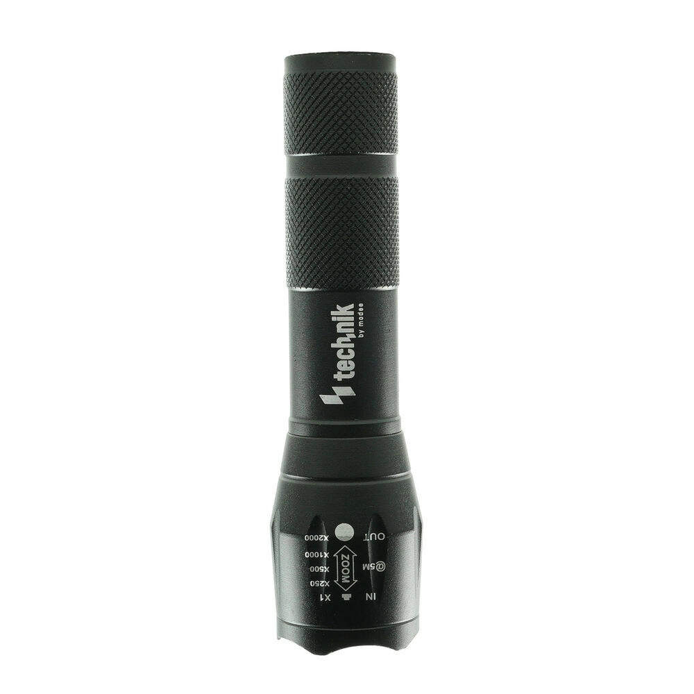 De Technik MT-P5 is een betrouwbare metgezel in de stad en in de natuur. De robuuste behuizing van aluminiumlegering met antislip-ribbeling ligt goed in de hand en weerstaat zwaardere omstandigheden. De schuifbare kop maakt vloeiend scherpstellen (zoom) mogelijk van een brede spreiding tot een smalle, verre bundel, zodat je het bereik eenvoudig aan de situatie aanpast.
