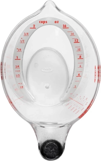 Maak koken en bakken makkelijker met de OXO Good Grips maatbeker 500 ml. Dankzij het schuine binnenvlak met maataanduiding lees je het volume comfortabel van bovenaf af, zonder te hoeven bukken. Overzichtelijke schalen in ml, oz en cups zorgen voor precisie bij elk recept.