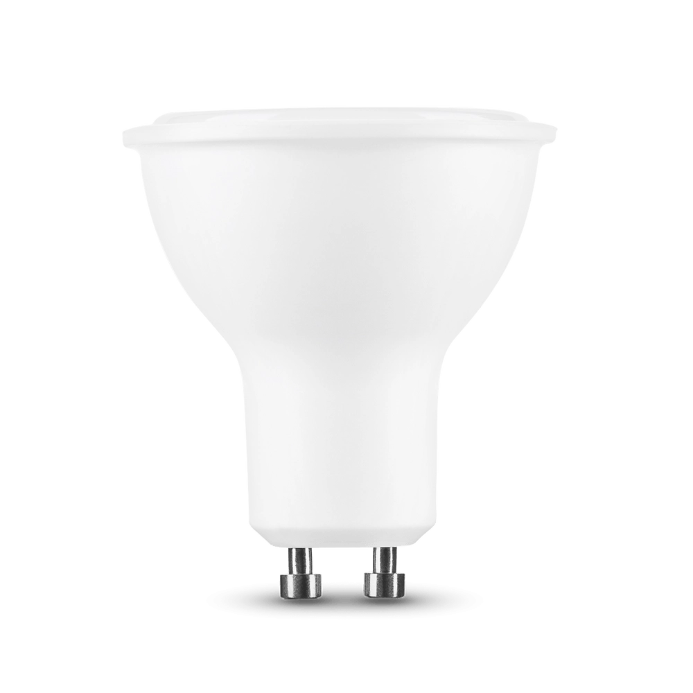 Energiezuinige spot LED-lamp GU10 4,5 W met een helderheid van 400 lm en prettig neutraal wit 4000 K zorgt voor direct en egaal licht met een brede straalhoek van 110°. Dankzij de combinatie van een aluminium kern en een kunststof behuizing is hij licht, duurzaam en ideaal voor spots en inbouw in gipskarton. Lange levensduur van 25.000 u en efficiënte SMD-LED-chips garanderen betrouwbare werking en laag verbruik.