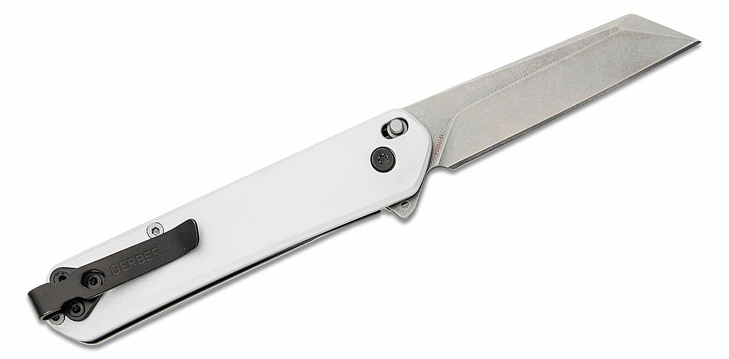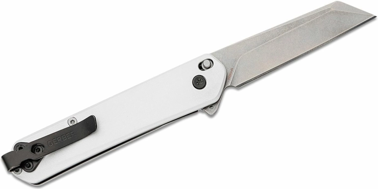 Licht en duurzaam EDC-mes GERBER Spire AO met een lemmet van 7,4 cm, voorzien van geassisteerde opening met flipper, betrouwbare Liner Lock vergrendeling en een elegante aluminium handgreep met clip. Het 440A roestvaststalen lemmet met stonewash afwerking en Reverse Tanto vorm is ideaal voor alledaagse taken.