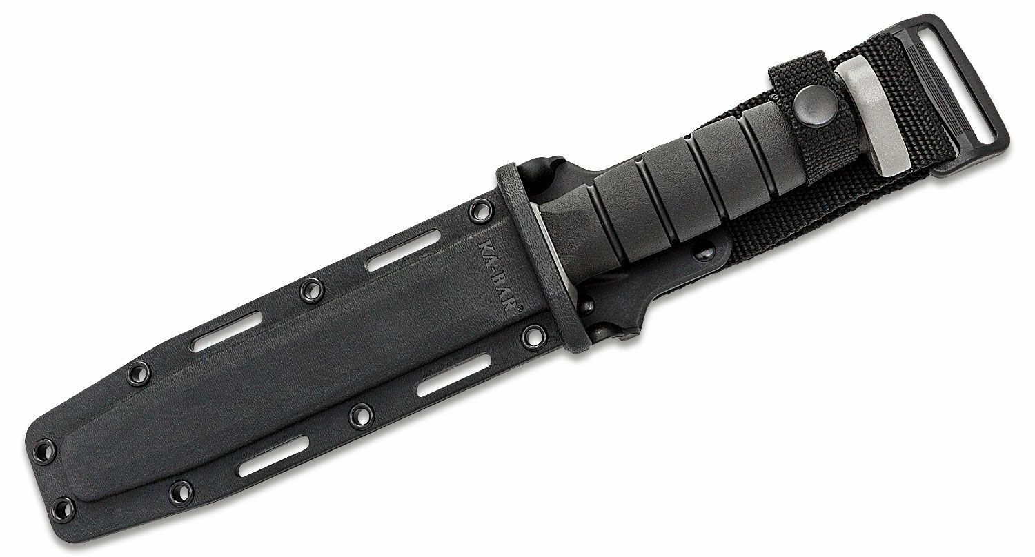 De tactische en veelzijdige KA-BAR Extreme Fighting/Utility is een betrouwbare metgezel voor jacht, kamperen en bushcraft. Hij biedt een vast lemmet van gereedschapsstaal D2 met zwarte coating, een ergonomisch handvat van Kraton G met zekere grip en wordt geleverd met een duurzame Kydex schede voor veilig dragen.