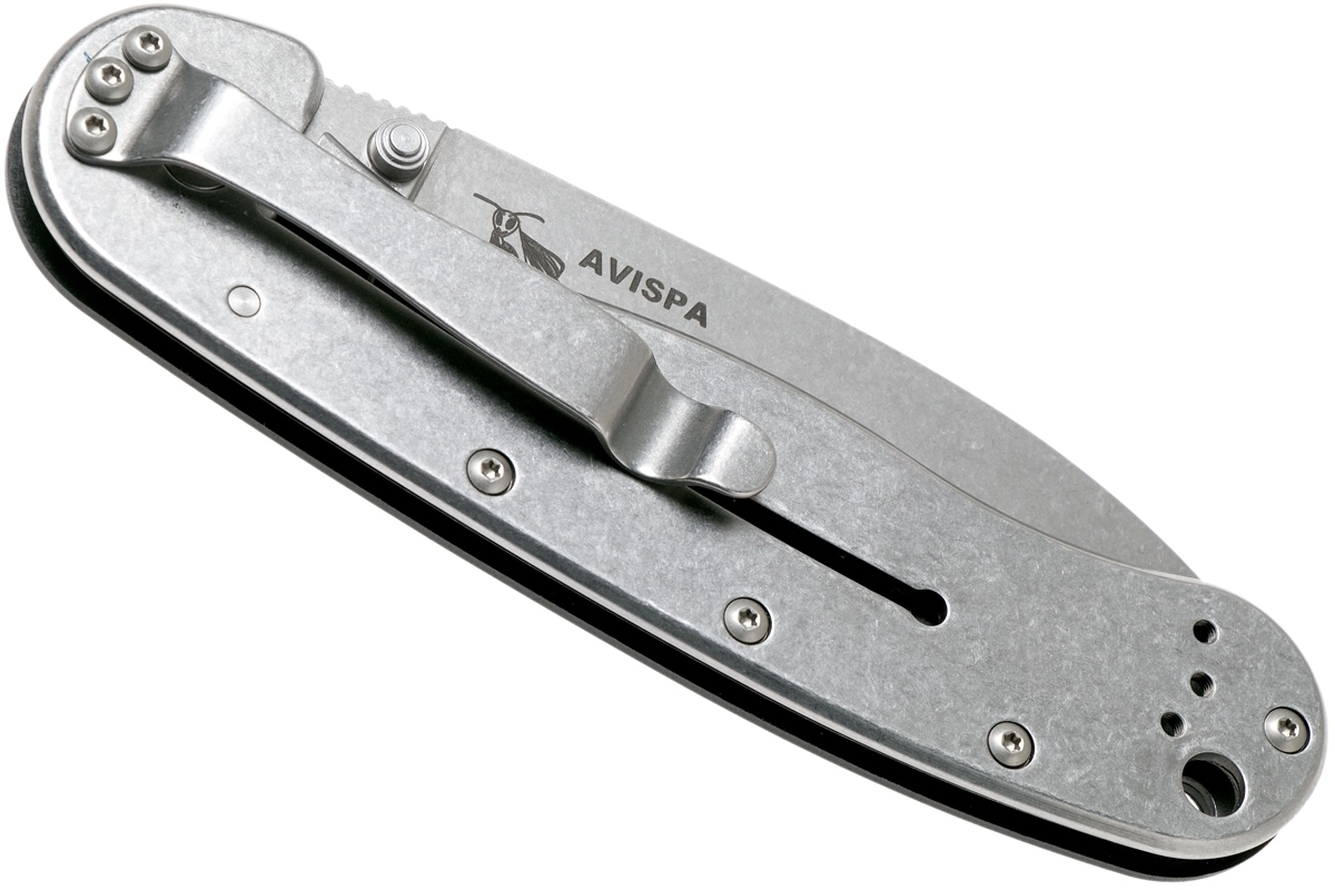 Praktisch EDC‑mes voor elke dag – de ESEE Avispa biedt een slijtvast lemmet van D2‑staal met een stonewash afwerking, een betrouwbare framelock‑vergrendeling en een zekere grip dankzij het zwarte FRN‑handvat. Te openen met duimpin, clip voor broekzak‑carry en een koordoog maken het een uitstekende keuze voor stad en buiten.
