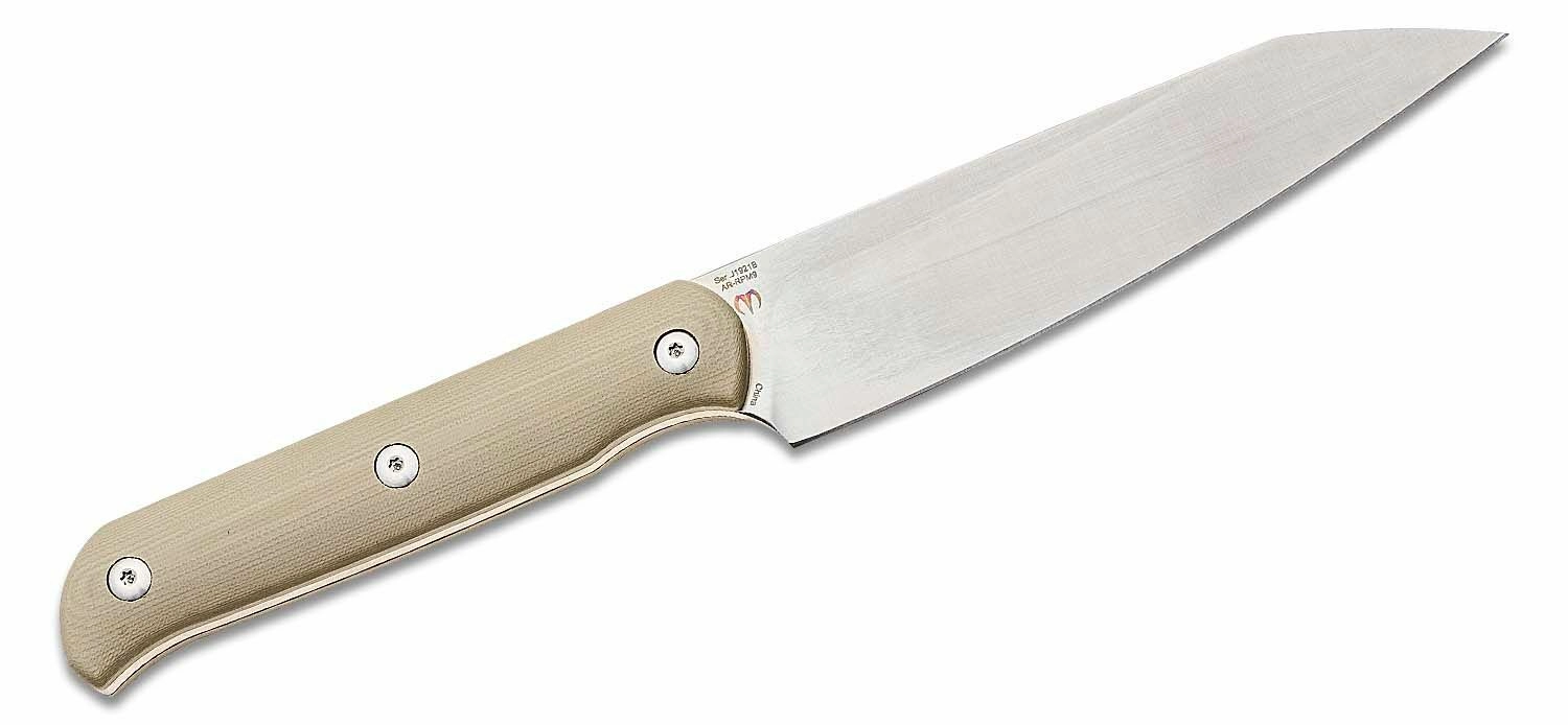 De gladde snede van AR-RPM9-staal met satijnen oppervlak zorgt voor schone sneden en langdurige scherpte, zowel in de keuken als in het kamp.