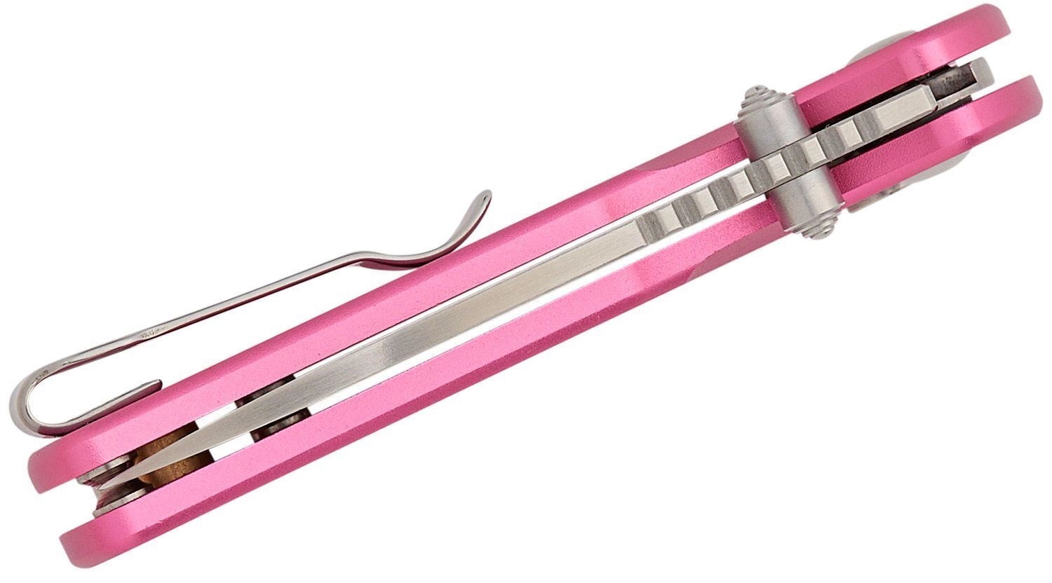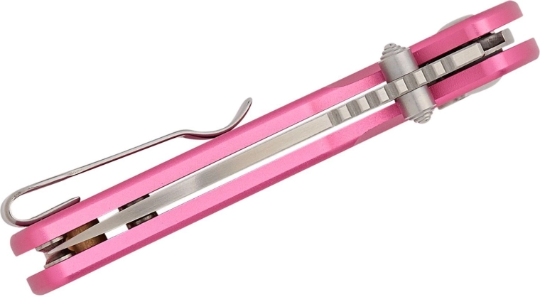 Keramische kogellagers en een tweezijdige duimstud maken snel, soepel en met één hand openen mogelijk. Na het openen vergrendelt het lemmet betrouwbaar met de Button Lock. Het lichte aluminium handvat in roze is duurzaam, ligt goed in de hand en dankzij de clip en het koordgat is het mes ideaal voor EDC-gebruik.