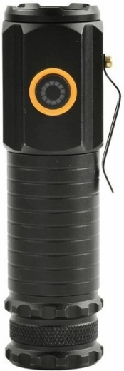 De oplaadbare 18650 (2200 mAh) accu is inbegrepen en kan gemakkelijk worden opgeladen via de USB‑C‑aansluiting op de lamp. De laadindicatie verloopt via de verlichte schakelaar (rood licht). De IPX4-constructie beschermt tegen spatwater en weerstaat een val van 1 m, waardoor het een uitstekende keuze is voor werk, wandelen en kamperen.