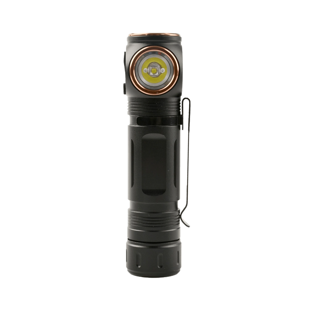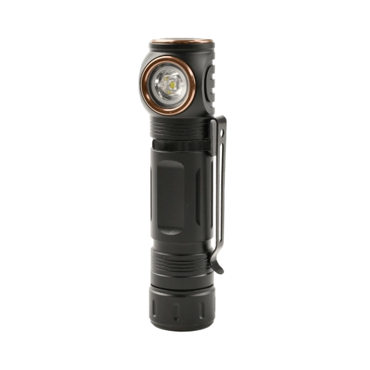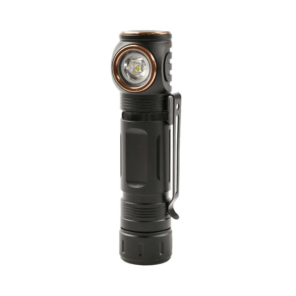 De compacte haakse zaklamp Technik L10 biedt een krachtig vermogen van 1000 lm, handig USB‑C opladen, IPX4 bestendigheid en flexibel gebruik in de hand, op een zak of als hoofdlamp dankzij de meegeleverde hoofdband en magnetische voet.
