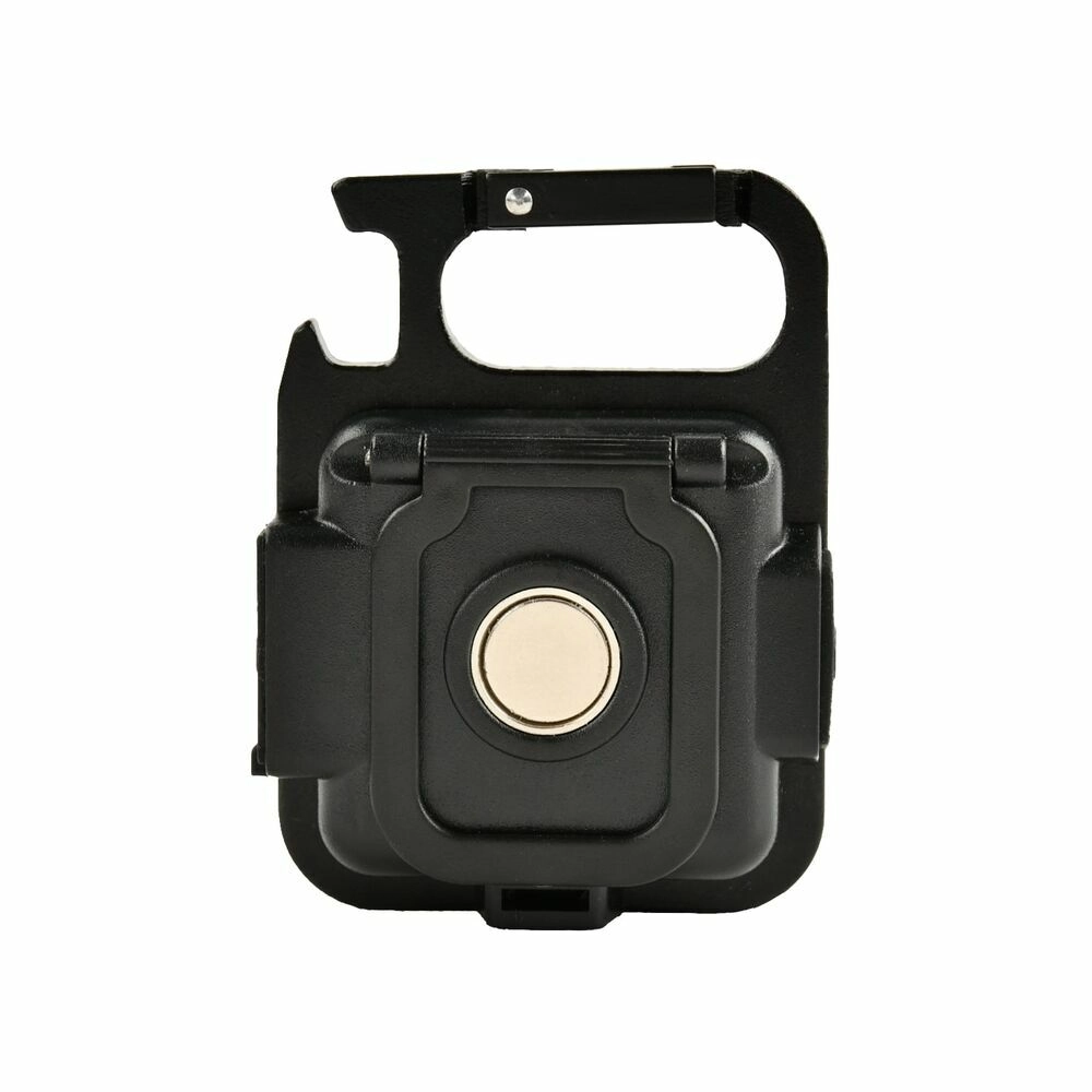 Dankzij de doordachte bevestiging gebruik je hem precies waar je hem nodig hebt. De achterste sterke magneet hecht aan metalen oppervlakken, de clip maakt snel vastklikken mogelijk en het karabijnframe vergroot de ophangmogelijkheden. Met IP44 en schokbestendigheid tot 0,5 m kan hij aan de slag in de werkplaats en buitenshuis.