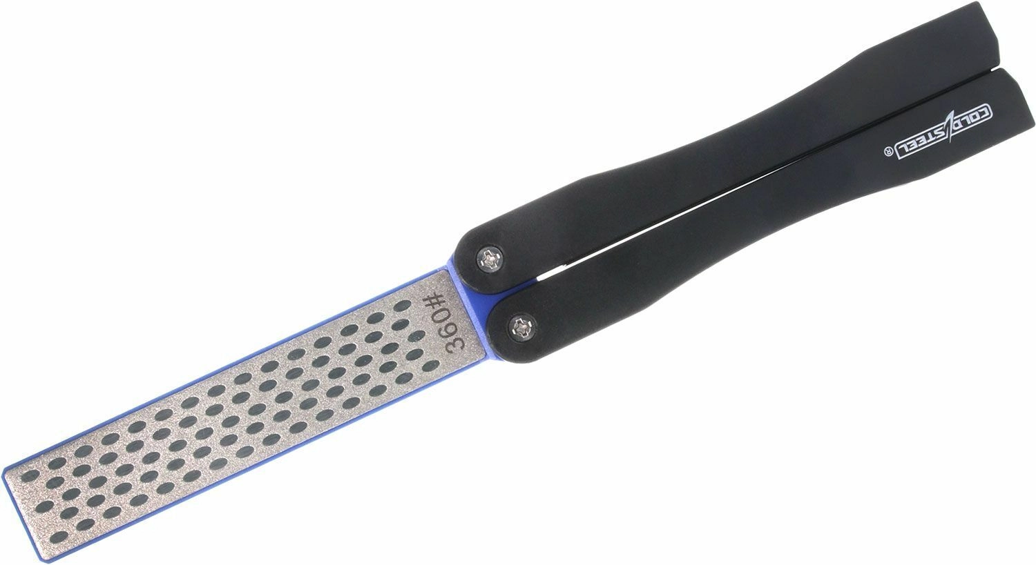 Compacte en lichte COLD STEEL messenslijper met dubbelzijdige steen, biedt twee korrels 600 en 360 voor zowel snel als fijn slijpen. De praktische vlindergreep beschermt de slijpoppervlakken tijdens transport en zorgt voor veilig gebruik. Voor eenvoudig onderhoud kan er droog of met water geslepen worden – olie is niet nodig.