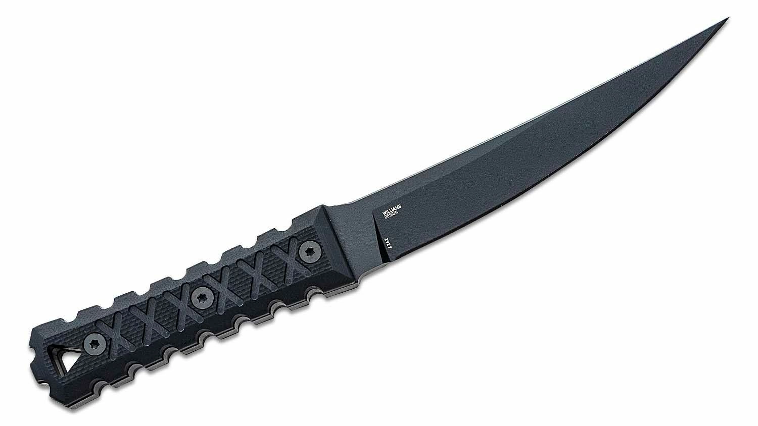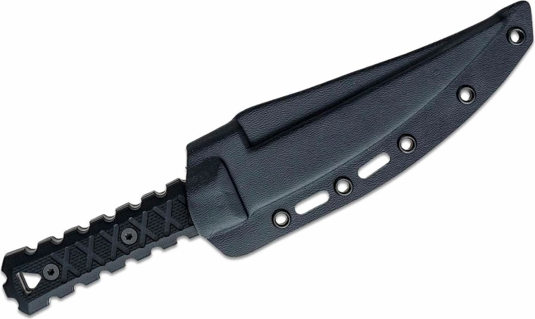 Het tactische mes CRKT HZ6, ontworpen door vechtkunstexpert James Williams, biedt een lange vaste lemmet van SK-5 staal met een zwarte coating, een veilige grip dankzij de G10 handgreep en een veelzijdige Boltaron schede voor verschillende draagopties.