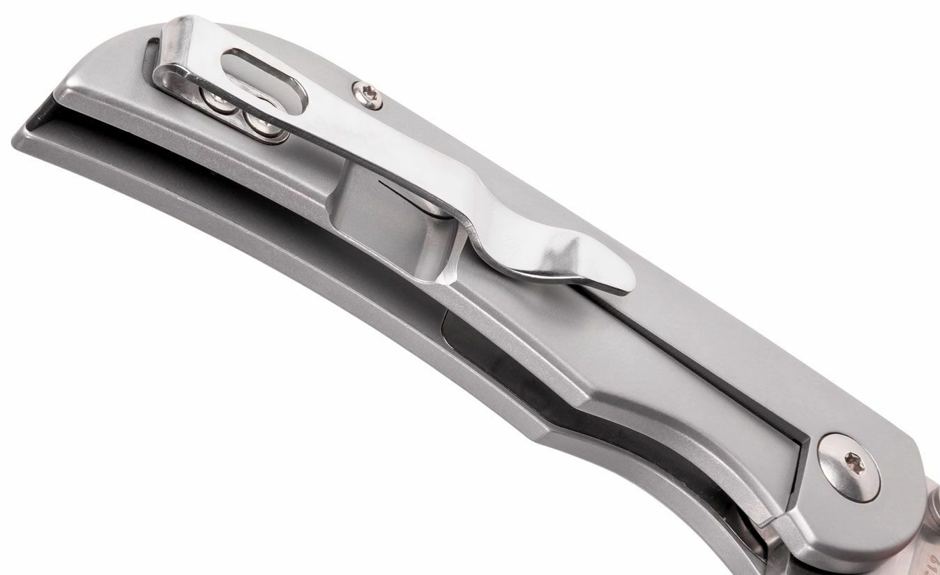Het robuuste volledig roestvrijstalen handvat met matte afwerking ligt uitstekend in de hand en de Frame Lock houdt het lemmet stevig vast tijdens het werk. De praktische broekclip maakt discreet en zeker dragen in de broekzak mogelijk.