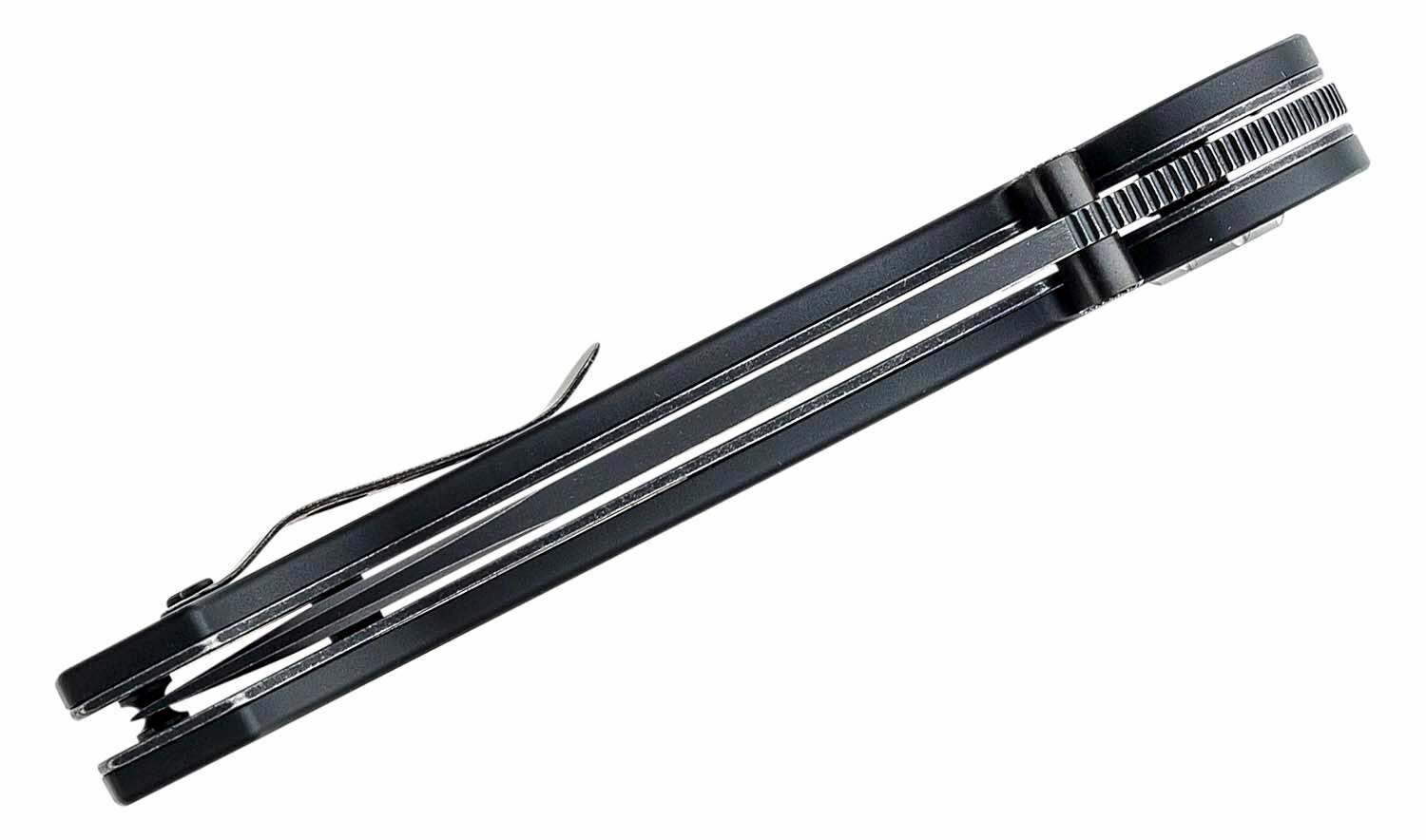 Zwart geanodiseerd aluminium met ontlastingsopeningen verlaagt het gewicht zonder concessies aan de sterkte. De broekclip zorgt voor comfortabel EDC-dragen.