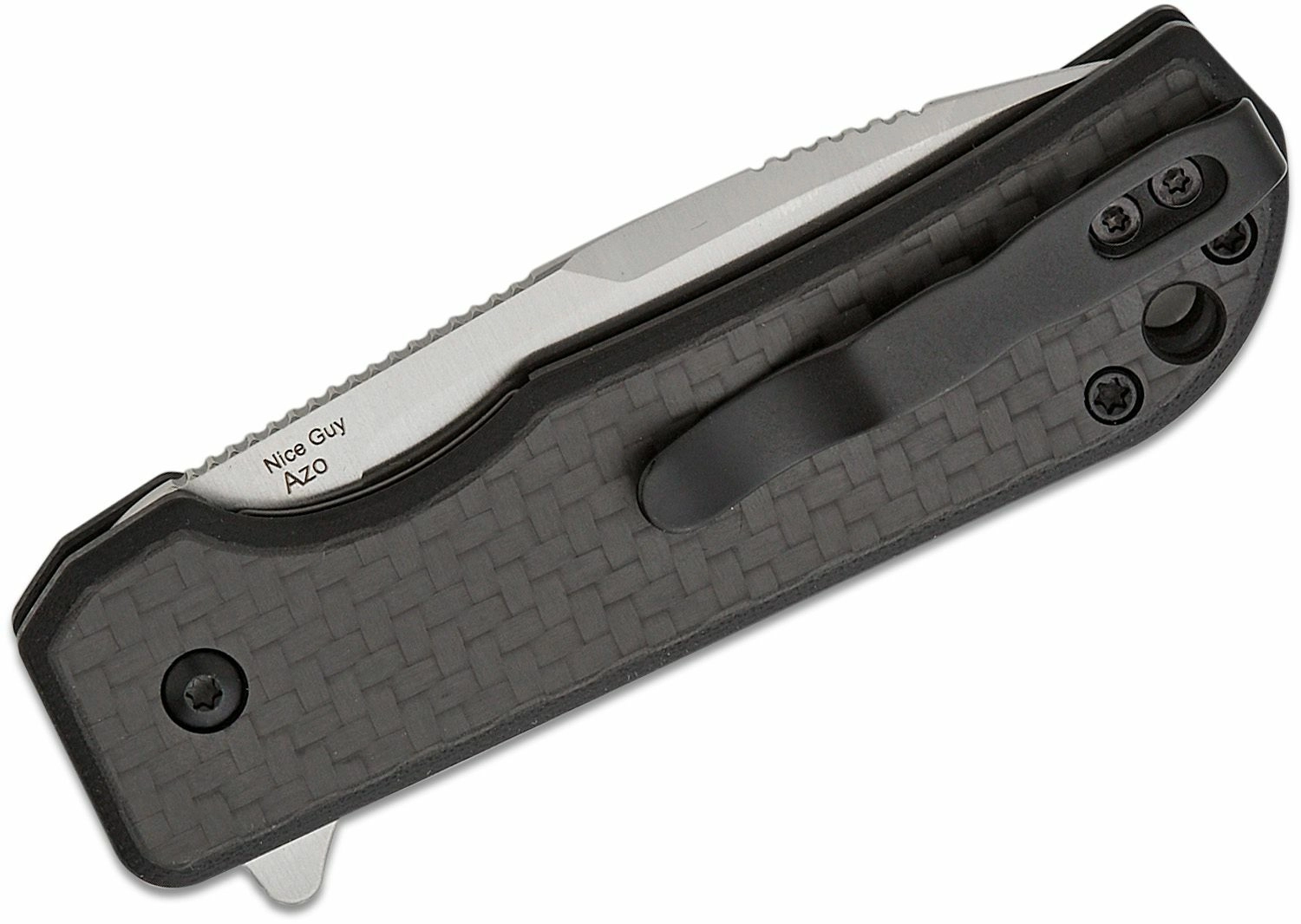 Compact EDC-mes Kizer Nice Guy ontworpen door Azo, biedt een betrouwbaar 154CM lemmet met satijnen afwerking, snelle Flipper-opening en een veilige Linerlock-vergrendeling. Het lichte handvat van koolstofvezel zorgt voor een stevige grip, met een broekclip en een koordgat.
