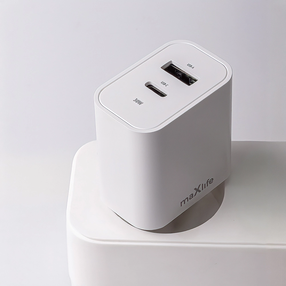 Zoek je een veelzijdige en krachtige lader voor dagelijks gebruik? De Maxlife 30 W combineert een compact ontwerp met ondersteuning voor moderne snellaadprotocollen. Dankzij de twee poorten USB‑C en USB‑A laad je eenvoudig twee apparaten tegelijk op, met maximale veiligheid en efficiëntie.