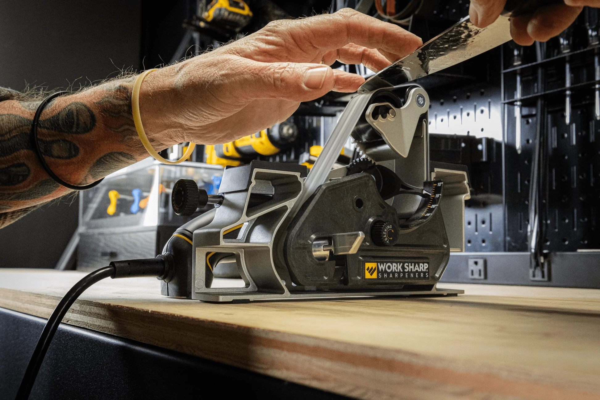 Het Work Sharp Blade Grinder Mk2-opzetstuk verandert je Ken Onion Edition Knife & Tool Sharpener Mk.2 in een krachtige tafelopstelling voor horizontaal slijpen. Dankzij volledig instelbare snedehoeken van 10° tot 35° en grotere banden van 1" x 18" krijg je maximale precisie, controle en herhaalbaarheid bij het slijpen van keuken-, outdoor- en werkmessen.