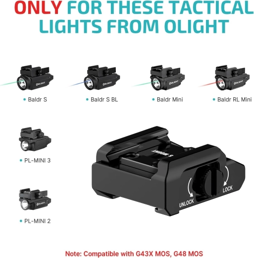 OLIGHT 43X MOS is een montage speciaal ontworpen voor compacte opstellingen op GLOCK 43X MOS/48 MOS. Hiermee bevestig je populaire tactische lampen en dankzij de vloeiende verstelling op de rail stel je hun ideale positie in voor snelle en zekere bediening.