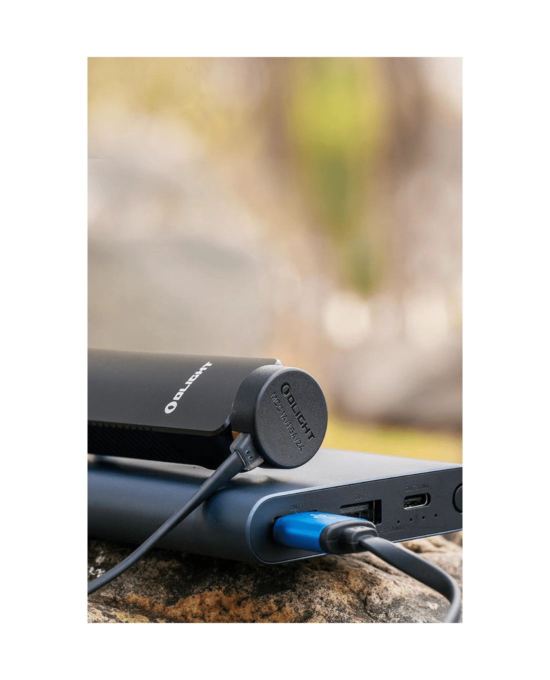 Aluminium behuizing met IPX7-bescherming trotseert regen en veeleisende omstandigheden. De ingebouwde 1050 mAh-accu wordt opgeladen via de magnetische USB-kabel MCC1A voor eenvoudig dagelijks onderhoud.