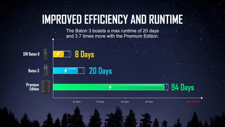 - Tot 20 dagen werktijd in moonlight-modus (0,5 lm)