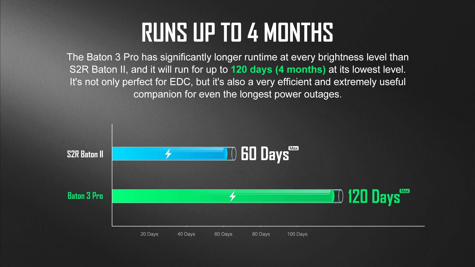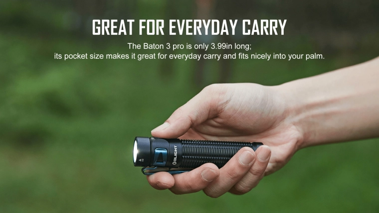 De OLIGHT Baton 3 Pro CW is een krachtige maar zakformaat zaklamp, ideaal voor dagelijks gebruik, werk en outdoor. Hij levert een lichtstroom van 1.500 lm met een reikwijdte van 175 m en een extreme werktijd tot 120 dagen in lage standen. Dankzij het compacte formaat (lengte 10,13 cm) en het gewicht van 103 g past hij gemakkelijk in je hand, zak of rugzak.