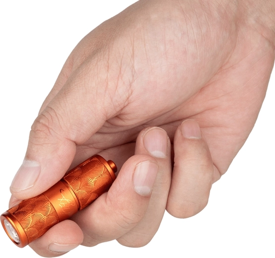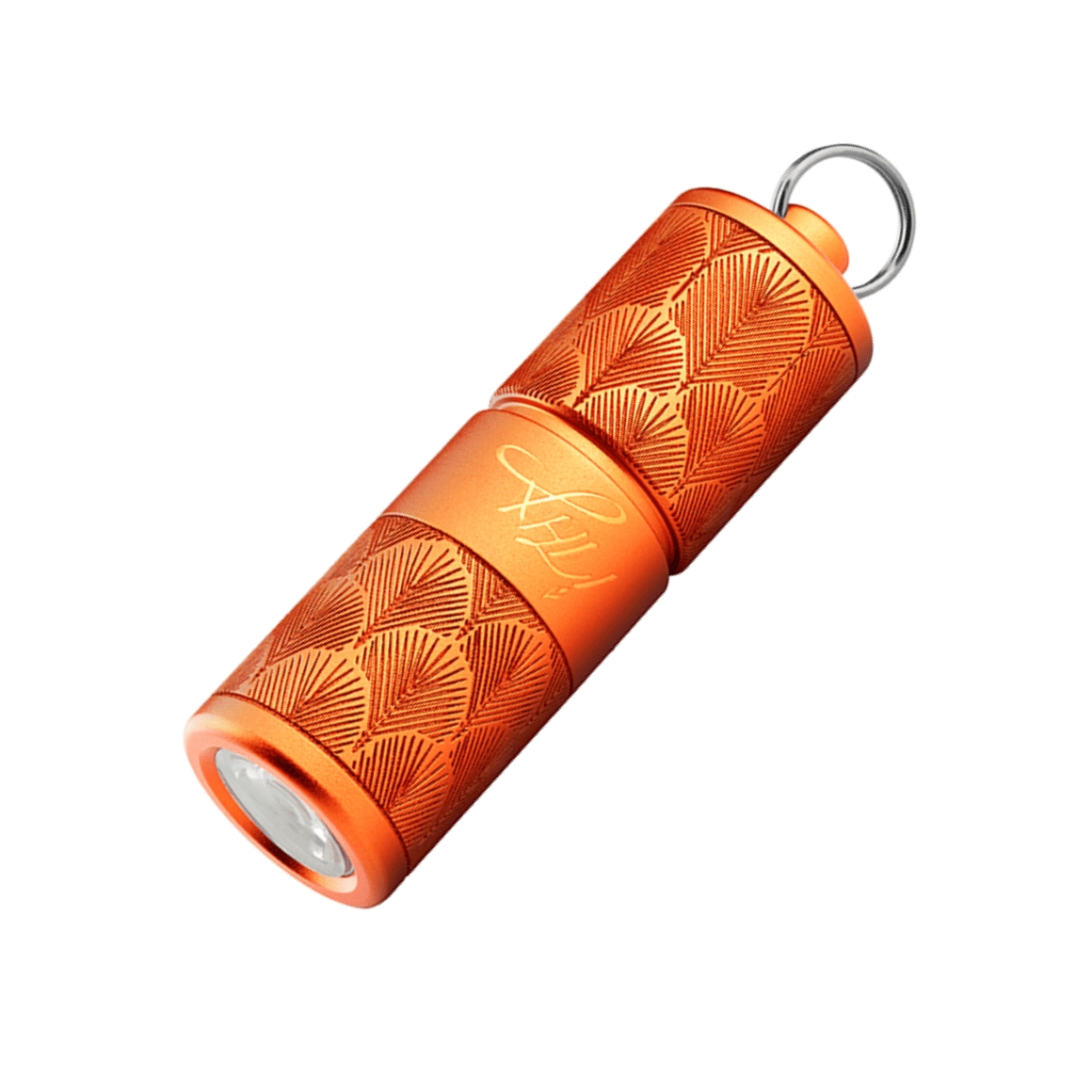 De Olight iTHX Orange Feathers is een stijlvolle EDC-zaklamp voor aan de sleutelbos met een motief van “oranje veren”, die compacte afmetingen combineert met verrassende prestaties. De moderne CSP-LED met TIR-optiek levert een gelijkmatige lichtbundel met een maximaal vermogen van 180 lumen en een bereik van 48 meter.