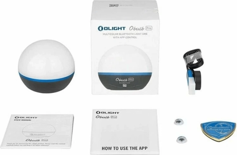 De OLIGHT Obulb Pro S is een slimme draagbare LED-lamp met wit licht en RGB-effecten, die je eenvoudig bedient via de Olight Hub-app met Bluetooth en via de onderste knop. Dankzij de magnetische onderzijde en het meegeleverde zelfklevende metalen plaatje bevestig je haar op de meeste gladde oppervlakken – thuis, in de auto of in de tent.