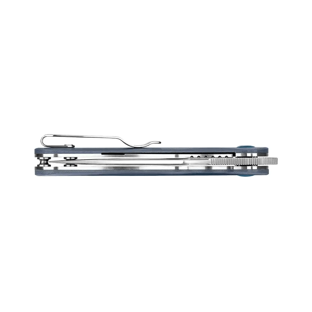 De ergonomische greep van G10 ligt uitstekend in de hand en geeft zeker houvast, ook bij langdurig gebruik. De Liner Lock vergrendelt het lemmet betrouwbaar in geopende stand en de diepe broekklem maakt onopvallend dragen mogelijk. De Splint combineert functionaliteit, duurzaamheid en een strak design met een blauwe accentring op de pivot.