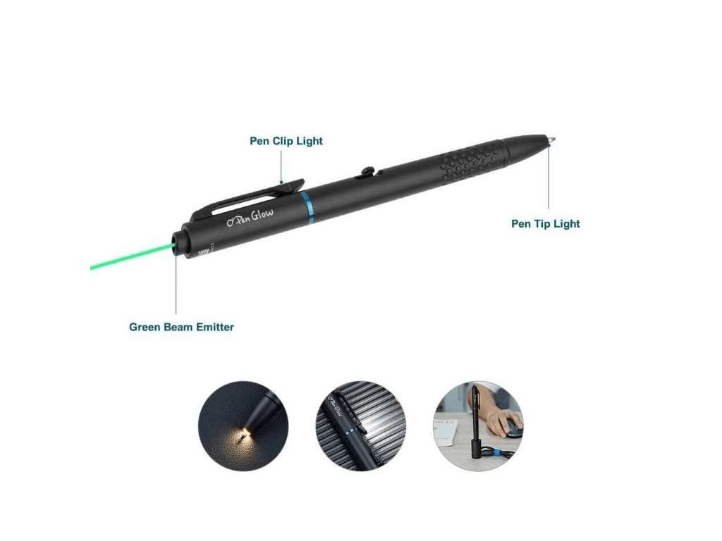 De multifunctionele pen OLIGHT O'Pen Glow combineert schrijven, een clip-LED (5–120 lm), LED-licht in de penpunt en een groene laserpointer in een elegant lichaam van aluminiumlegering. Gescheiden schakelaars voor het licht en de laser zorgen voor intuïtieve bediening, terwijl het oplaaddock met USB‑C de pen altijd klaar houdt. Licht en duurzaam ontwerp, comfortabele grip en een vergrendeling voor veilig meenemen maken van de O'Pen Glow het perfecte EDC‑hulpmiddel voor werk, lezen en presentaties.
