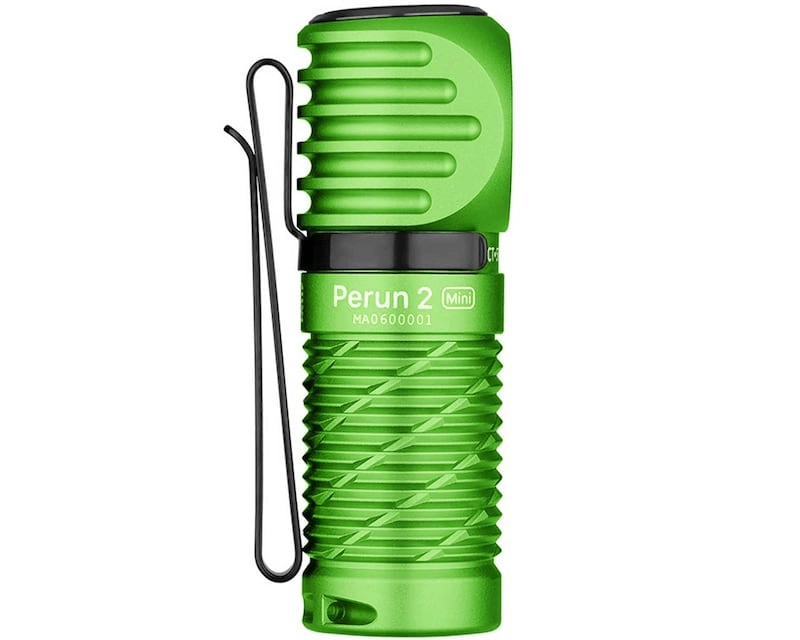 Compacte hoofdlamp en EDC-zaklamp OLIGHT Perun 2 Mini in de kleur Lime Green combineert witte en rode LED, biedt tot 1100 lm, een reikwijdte van 150 m en tot 10 dagen werktijd. Dankzij magnetisch opladen, een clip en de mogelijkheid om op een hoofdband te bevestigen is hij ideaal voor dagelijks gebruik, werk en outdoor.