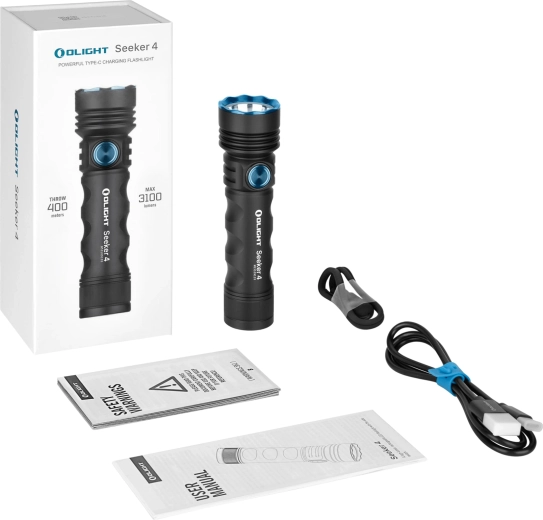 De Olight Seeker 4 Matte Black is een krachtige EDC-zaklamp die een robuuste constructie van luchtvaart‑aluminiumlegering combineert met praktische bediening en topklasse lichtprestaties. Met een lichtstroom tot 3100 lm, intensiteit van 40.260 cd en reikwijdte van 400 m snijdt hij moeiteloos door het duister en levert hij een schone, gelijkmatige lichtbundel.