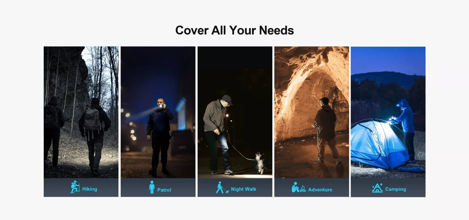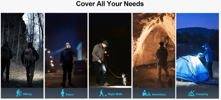 Dankzij de 21700-accu van 5000 mAh brandt hij tot 15 dagen in de Moon‑modus. Opladen is snel en gemakkelijk via de USB‑C‑poort onder een stofkapje, terwijl de IPX8‑waterdichtheid behouden blijft. De verbeterde metalen zijschakelaar en de driekleurige indicator van de batterijstatu s zorgen voor betrouwbare bediening in elke situatie.