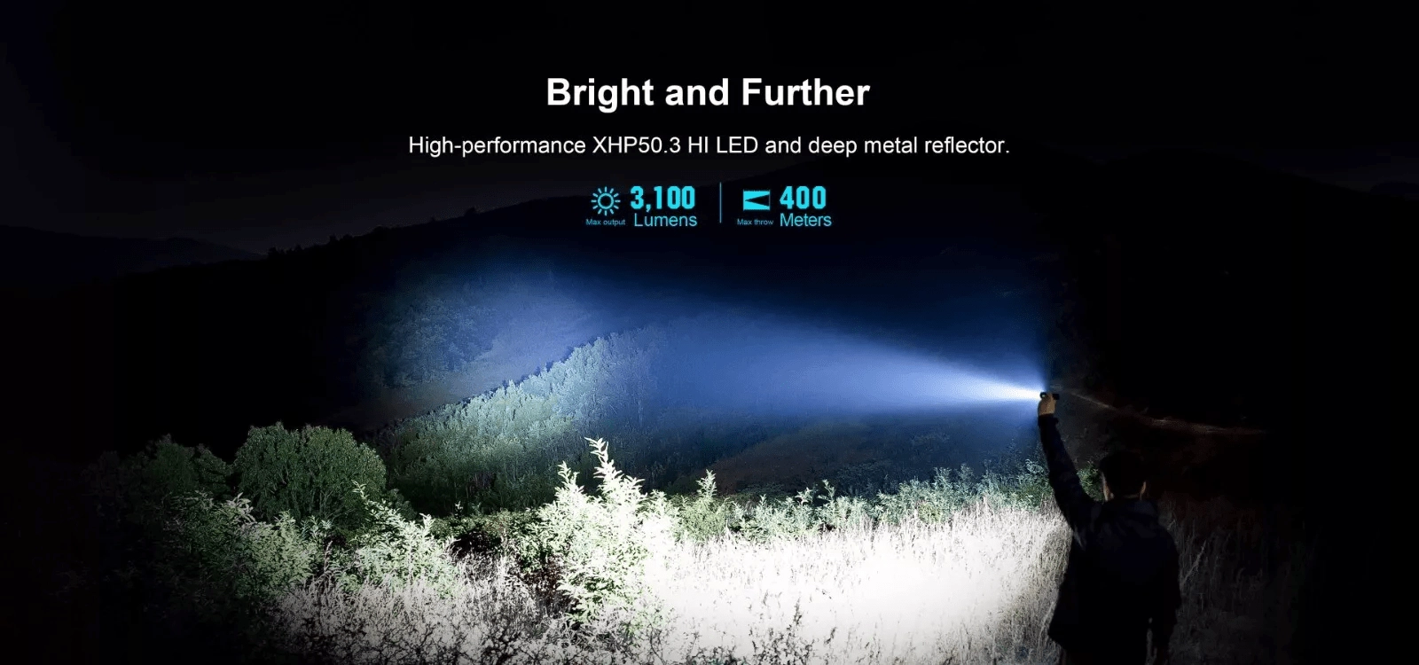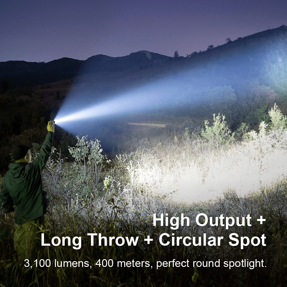 - Extreem vermogen van 3100 lm en een lange reikwijdte van 400 m.