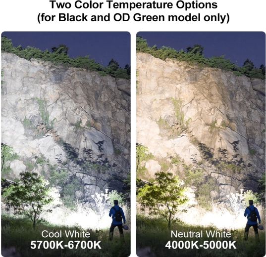 - Turbo: 1200 → 600 → 120 lm (3 + 41 + 25 min)