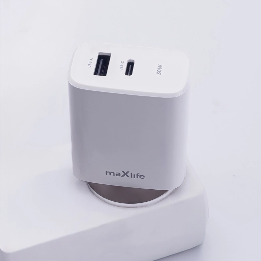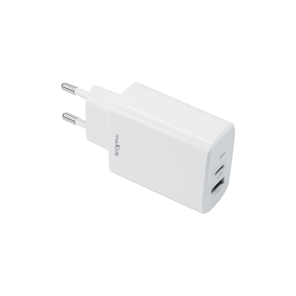 De universele MAXLIFE 30 W stopcontactlader combineert de moderne standaarden USB‑C PD en USB‑A QC, en laadt daarmee betrouwbaar smartphones, tablets, koptelefoons en kleinere laptops of consoles op. Dankzij intelligente vermogensregeling past hij zich aan het aangesloten apparaat aan en zorgt voor maximale snelheid zonder oververhitting.