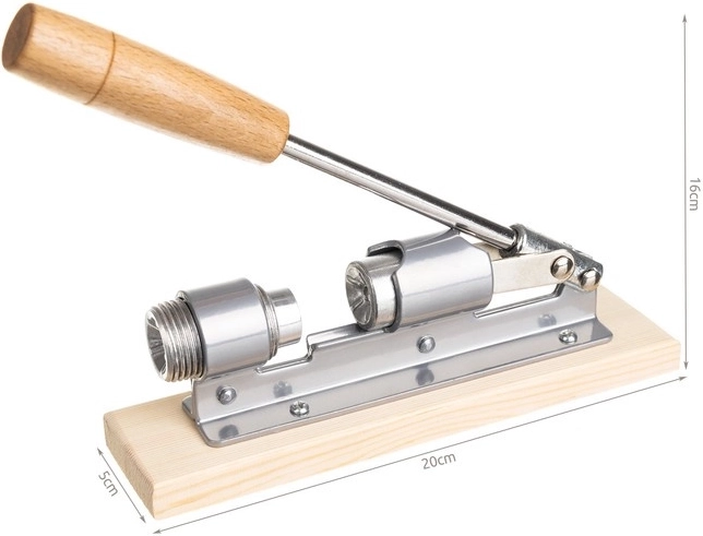 De stabiele houten basis houdt het apparaat stevig op het werkblad, waardoor het kraken snel, precies en veilig verloopt. Bediening van bovenaf vraagt minder kracht dan klassieke tang-notenkrakers en maakt langdurig gebruik makkelijker.