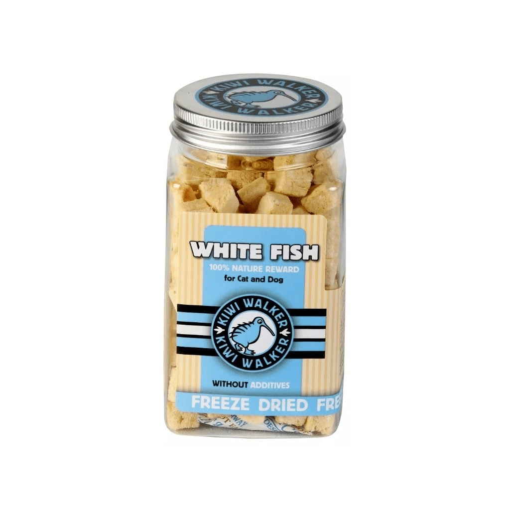 KiwiWalker FD Snack van witte vis is een heerlijke en licht verteerbare beloning voor honden van alle rassen. Vriesdrogen behoudt op zachte wijze de natuurlijke smaak, geur en voedingsstoffen zonder toegevoegde conserveermiddelen. Dankzij het lage vetgehalte en het hoge eiwitgehalte is het perfect voor dagelijkse training en een gevoelige spijsvertering.